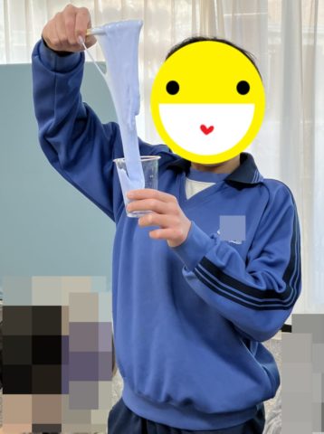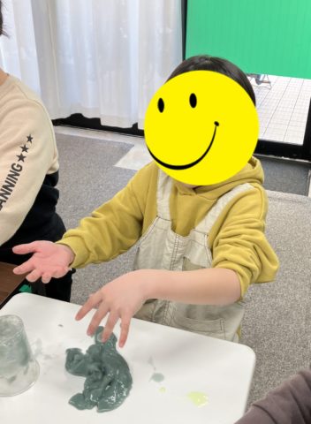 感触を楽しんだり、友だちが作ったスライムと混ぜてみたりと