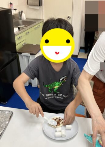 おやつ作りのプログラムで「マシュマロピザ」を作りました。