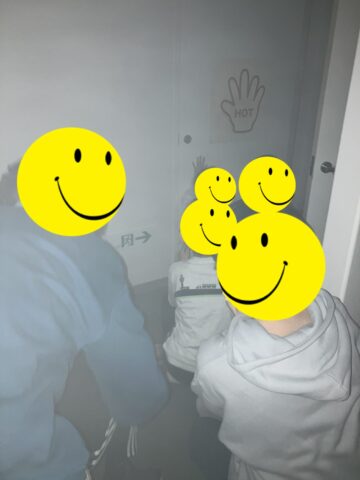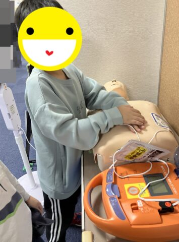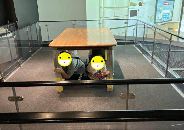 地震体験では地震が発生すると素早く机の下に隠れるなど、みんな施設のスタッフさんの指示に従ってしっかりと動くことができていました。