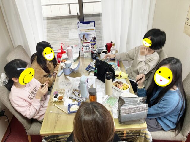 各部屋に分かれて、仲良し同士でちょっと遅い昼食。