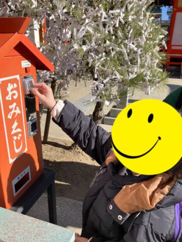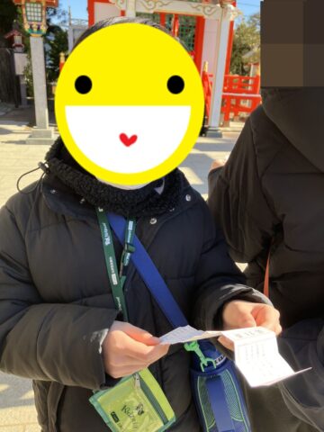 お賽銭をしてからみんなでおみくじを引きました。「何が出た~」とお互いのおみくじを見せ合いました。